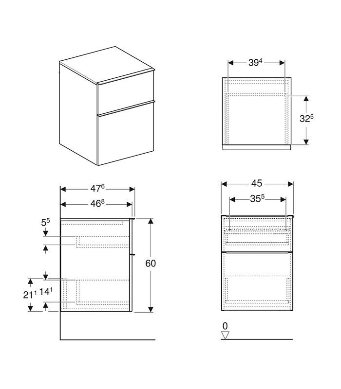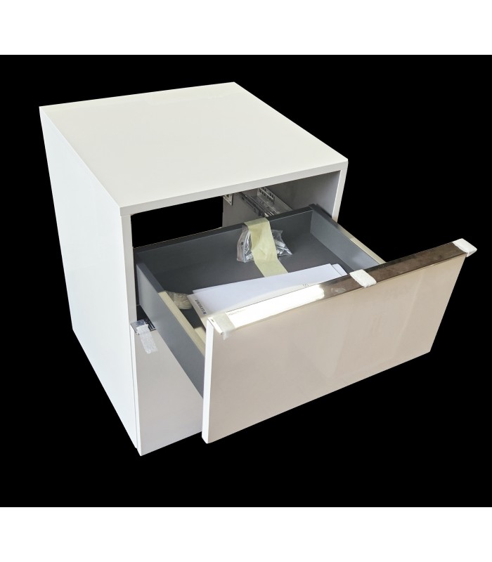 Geberit iCon 502.315.01.2 boční skříňka, rozměry šířka 45 x výška 60 x hloubka 47,6 cm. Váha 28,53 kg. Pomalé dovírání šuplíku. Bílá lesklá. Uvnitř šedá matná. Šrouby k zavěšení jsou součástí balení.