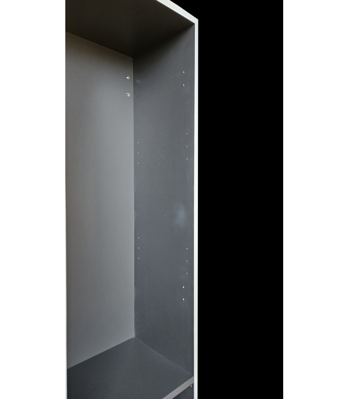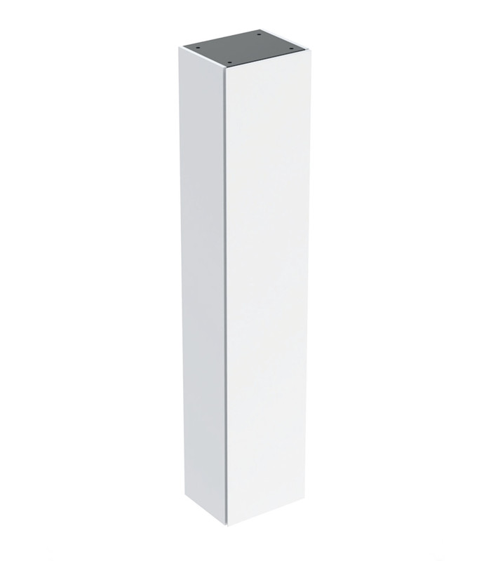 Geberit iCon 502.316.01.1, závěsná boční skříň, bílá lesklá, uvnitř je korpus antracitový matný. Rozměr výška 180 cm x šířka 32,8 cm x hloubka 25 cm. Dveře jdou umístit vlevo i vpravo (předvrtané otvory). Uvnitř vprostřed na pevno umístěná polička, dále 4ks skleněných poliček (2ks do horní části, 2ks do spodní části). Šrouby k zavěšení jsou součástí balení. Novější model bez úchytky, starší modely mají chromovou úchytku.