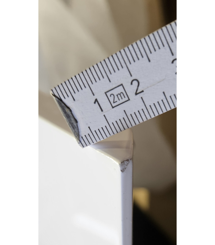 Vše viz fotogalerie, metr je u vad ,,rýhy na hraně korpusu + přední plocha dveří" přiložený přesně na rohu skříňky dole jak začíná.