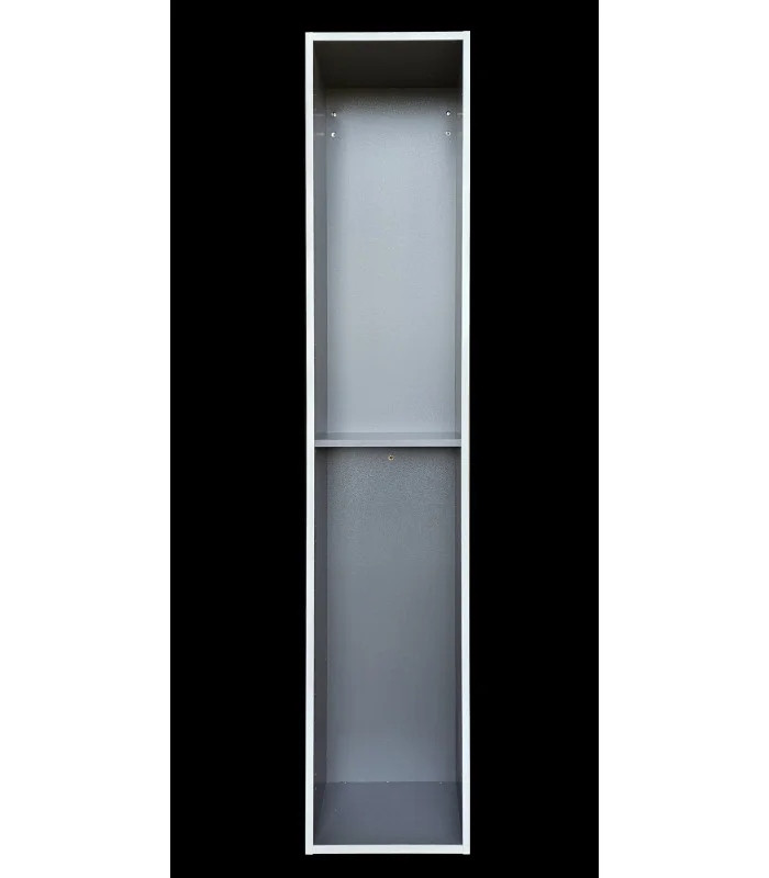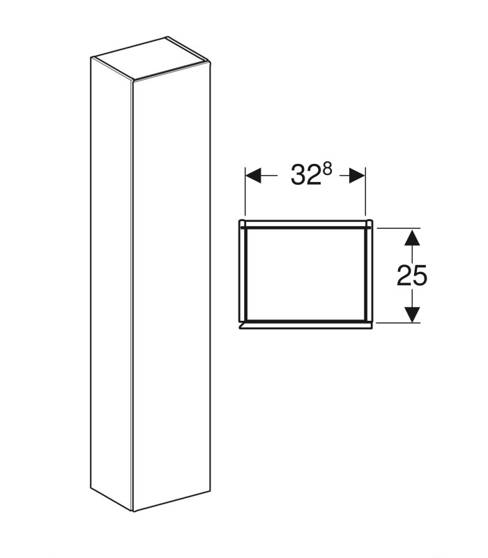 Geberit iCon 502.316.01.1, závěsná boční skříň, bílá lesklá, uvnitř je korpus antracitový matný. Rozměr výška 180 cm x šířka 32,8 cm x hloubka 25 cm. Dveře jdou umístit vlevo i vpravo (předvrtané otvory). Uvnitř vprostřed na pevno umístěná polička, dále 4ks skleněných poliček (2ks do horní části, 2ks do spodní části). Šrouby k zavěšení jsou součástí balení. Novější model bez úchytky, starší modely mají chromovou úchytku.