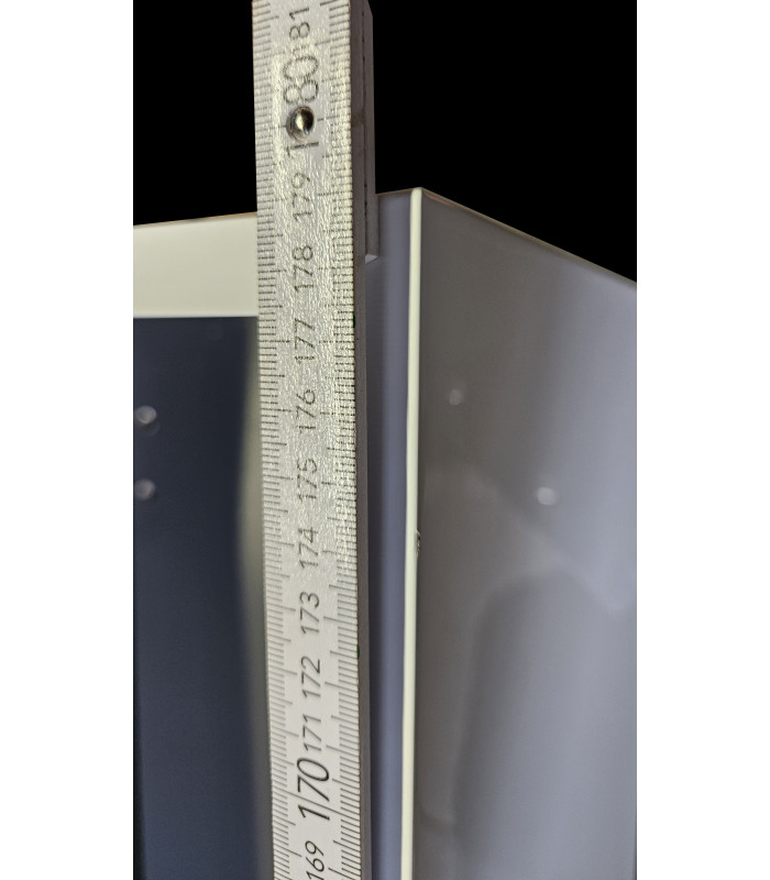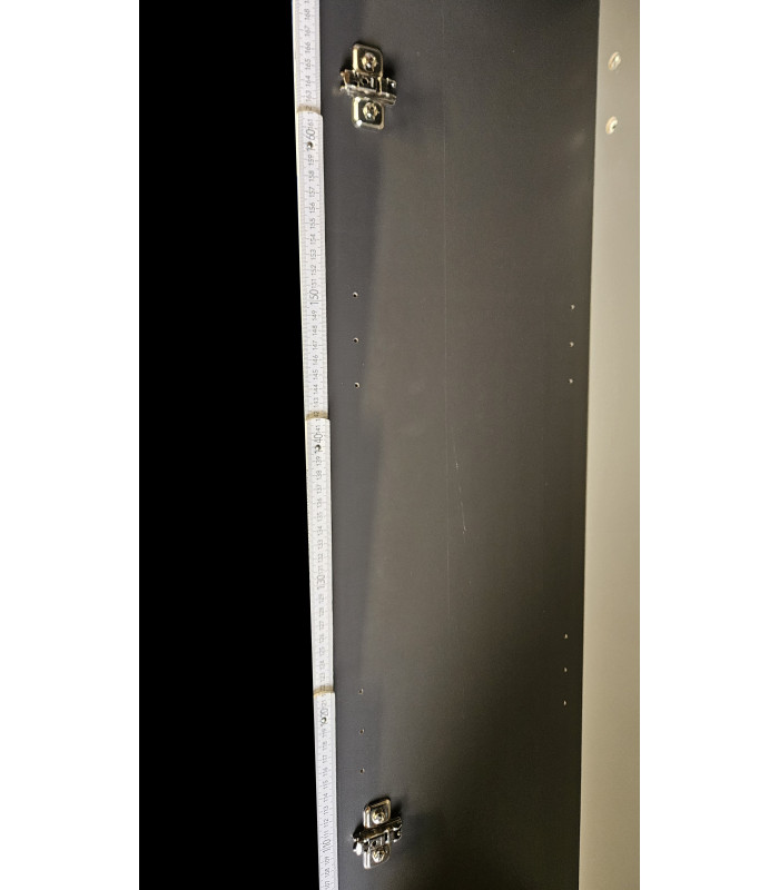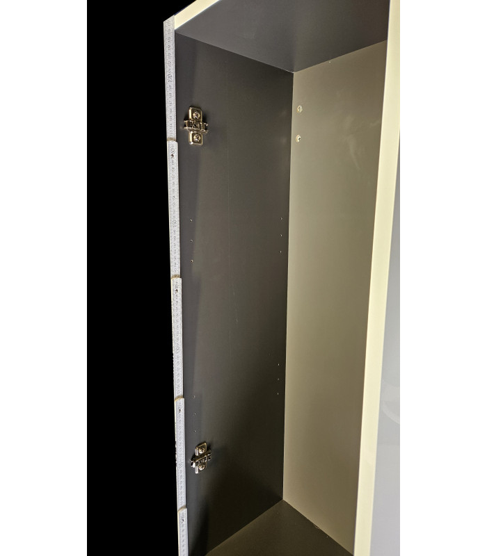 POZOR vady: uvnitř korpusu vlevo nahoře rýha, nafoceno s přiloženým metrem. Vpravo nahoře na hraně korpusu 3 mm vada laku, via fotogalerie. Na předních dveří je několik mikro rýh, bez fotografie.