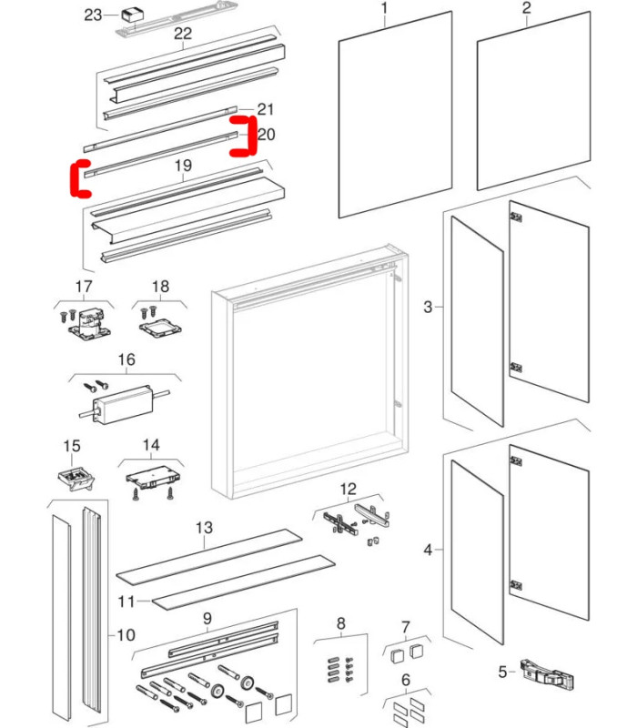 Geberit 244.992.00.1, náhradní LED osvětlení pro zrcadlovou skříň ONE šířky 90cm.
