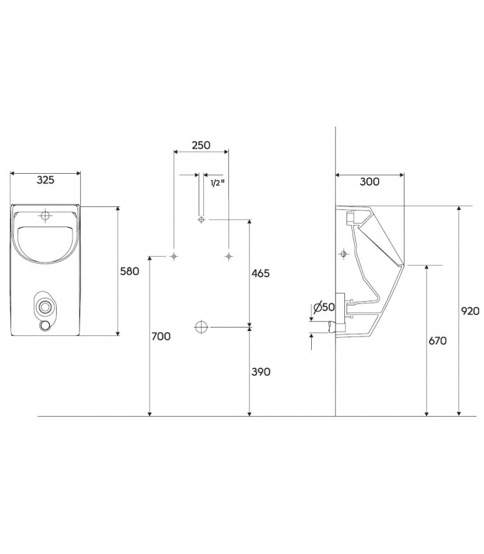 Geberit Renova Nr.1 Plan pisoár 235100000, splachovací objem 0,5 l, přívod zezadu, odpad dozadu. Rozměr šířka: 32,5 cm x hloubka: 30 cm x výška: 58 cm, váha 14,75 kg. POZOR u balení chybí sada pro skrytí šroubů, prodej se týká čistě keramiky a závěsů na pisoáru.