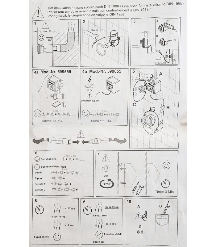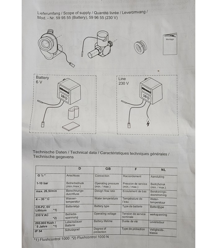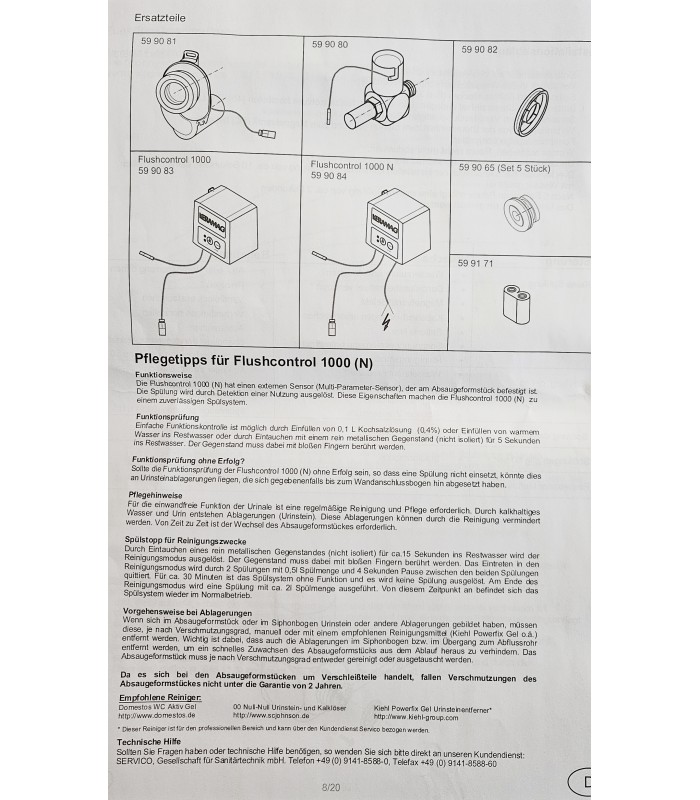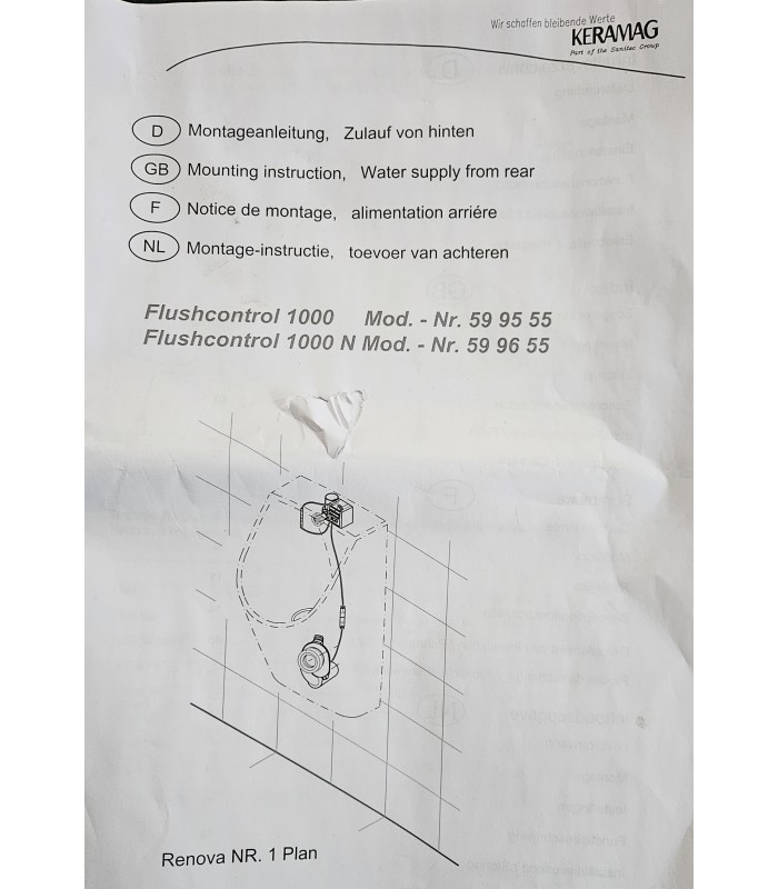 K tomu automatické splachování do sítě Keramag Flushcontrol 599655000 série 1000 N splachovací systém pisoárů na 230 V proud.