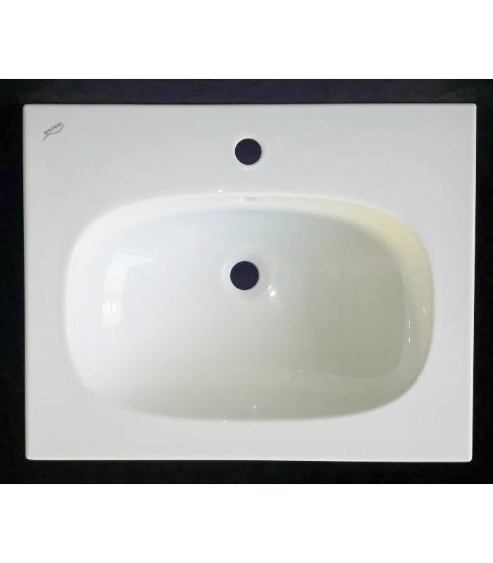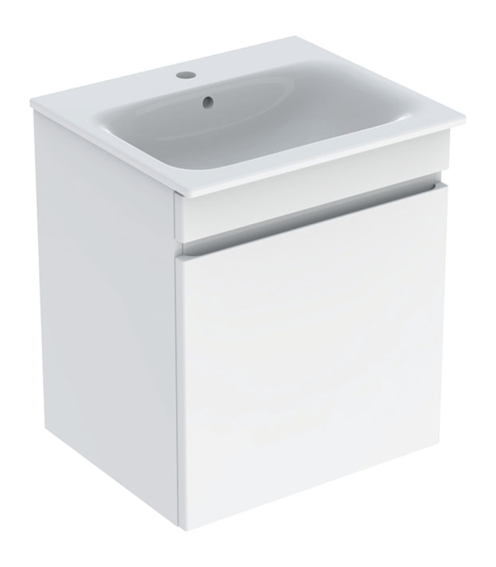 Prodej kompletu... Geberit Renova Plan závěsná skříňka 501.915.01.1 bílá lesklá, šířka 60 cm, včetně nábytkového ytra tenkého/ slim umyvadla Keramag neoriginální model.