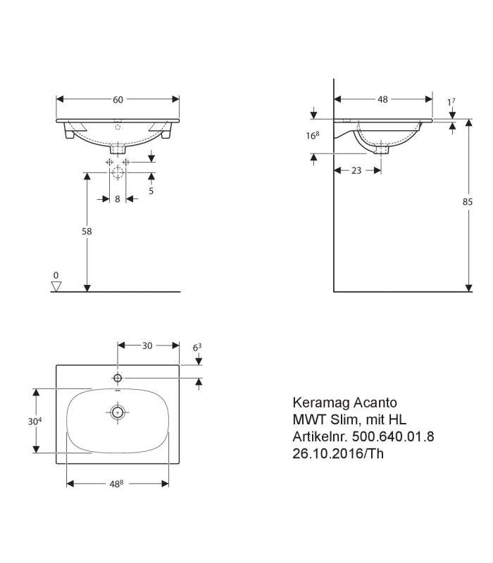 K tomu (originální umyvadlo od Geberitu chybí) do kompletu nábytkové umyvadlo Keramag Acanto 500.640.01.8 KeraTect, extra tenké/ slim.