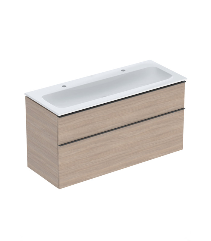 Komplet...Geberit iCon set skříňka barva dub + ultra tenké/ slim nábytkové dvojumyvadlo 502.334.JH.1, bez přepadu, šířka 120 cm.