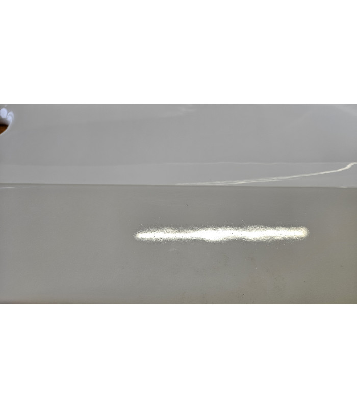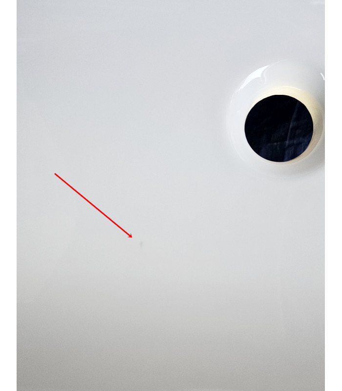 POZOR umyvadlo má glazuru II.kategorie, via fotogalerie, lehce pórovitý povrch, na fotografii lze vidět v odlesku světla. Tato vada jde vidět jen pod určitým úhlem a ,,není do očí bijící". Druhá vada je 1 mm šedá tečka nalevo od odpadu umyvadla, též nafocené ve fotogalerii. Skříňka je stav ,,AA", zcela nová nevybalená.