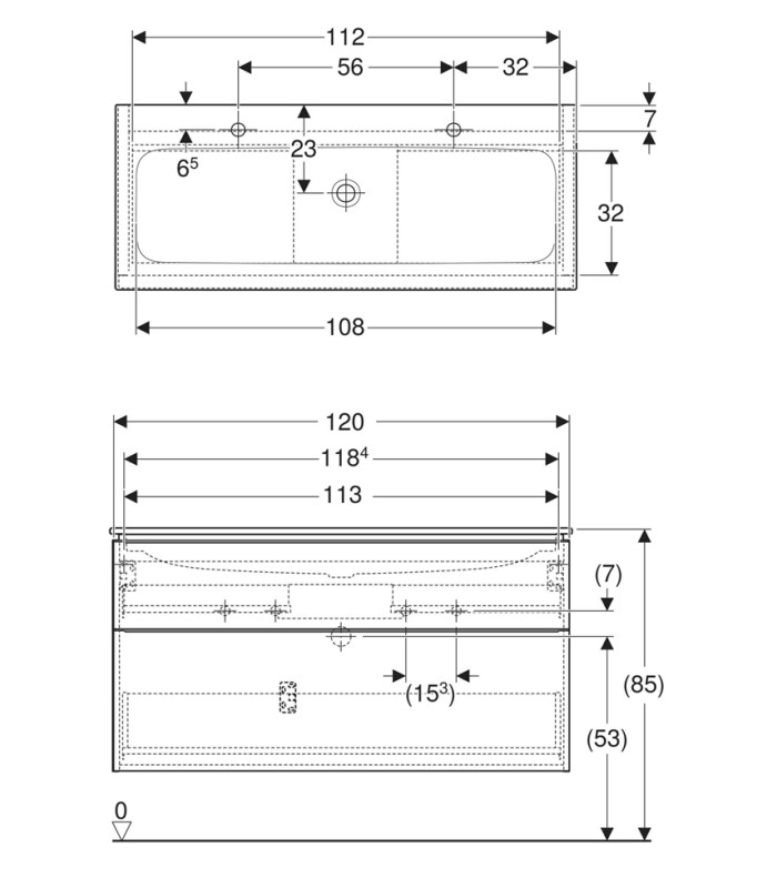 Geberit iCon 502.334.JH.1, závěsná koupelnová skříňka, dekor dub, melaminová struktura dřeva, rozměry šířka 1118 skříň / 1200 umyvadlo x výška 63 x hloubka 48 cm. Dva veliké šuplíky, s tichým dojezdem, bez výřezu pro odpad. Maximální nosnost šuplíku 30kg. Celková hmotnost 62,88 kg. Nábytkové umyvadlo v moderním velmi tenkém provedení/ slim. S otvorem pro dvě baterie a bez přepadu. Včetně šroubů pro zavěšení. Včetně umyvadlového vývodu s volným odtokem, průměrem 32 mm.