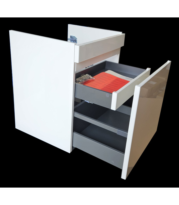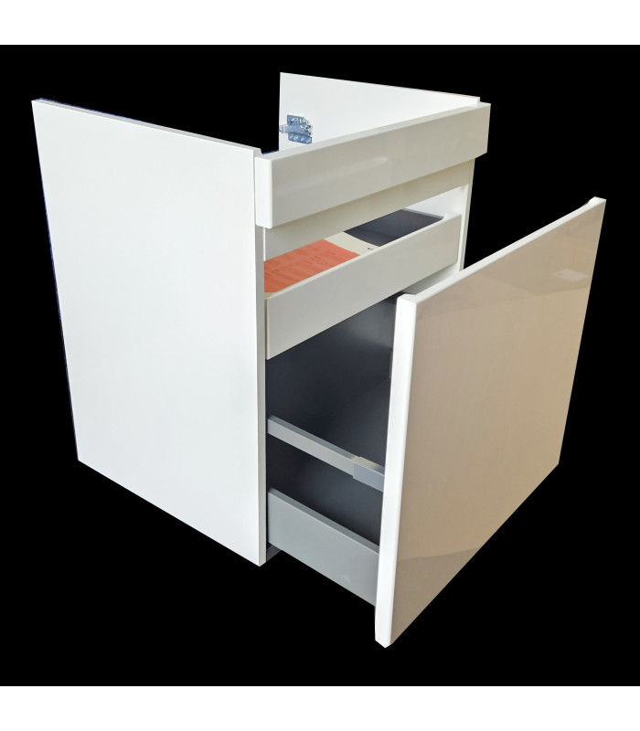 Geberit Renova 501.905.01.1 nový model, závěsná koupelnová skříň bílá lesklá. Rozměr šířka 53,6 x hloubka 44,6 x výška 60,6 cm. 1x veliká zásuvka, 1x vnitřní šuplík, vnitřek skříňky barvy šedé matné. Pomalé dovírání zásuvek. Šrouby k zavěšení jsou součástí koupě. Kombinovatelné s umyvadly č.: