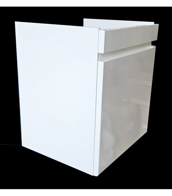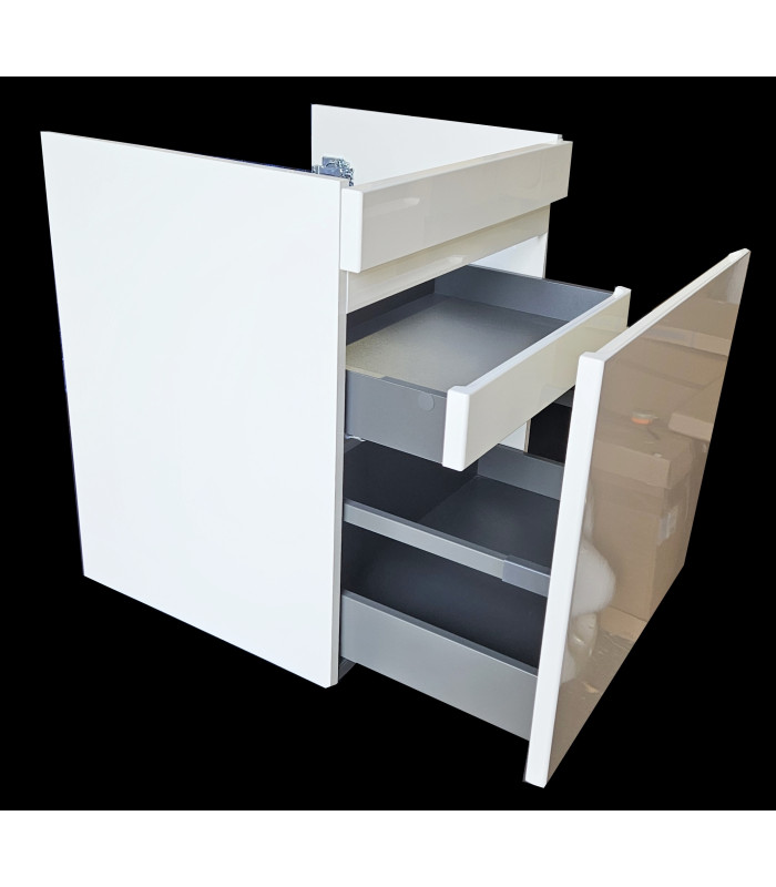 Geberit Renova 501.905.01.1 nový model, závěsná koupelnová skříň bílá lesklá. Rozměr šířka 53,6 x hloubka 44,6 x výška 60,6 cm. 1x veliká zásuvka, 1x vnitřní šuplík, vnitřek skříňky barvy šedé matné. Pomalé dovírání zásuvek. Šrouby k zavěšení jsou součástí koupě. Kombinovatelné s umyvadly č.: