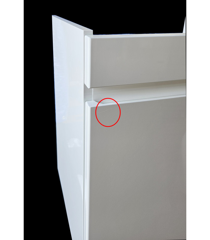 POZOR poničení: na přední ploše velkého šuplíku je rýha, dále na horní vnitřní hraně drážky (otvírání) je horší spoj/ lak, vše viz fotogalerie.