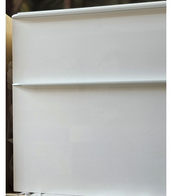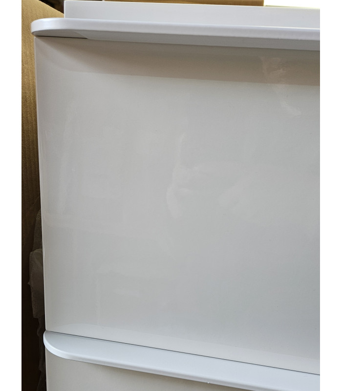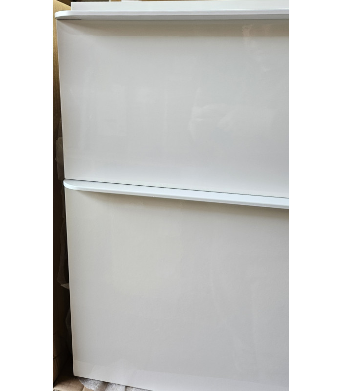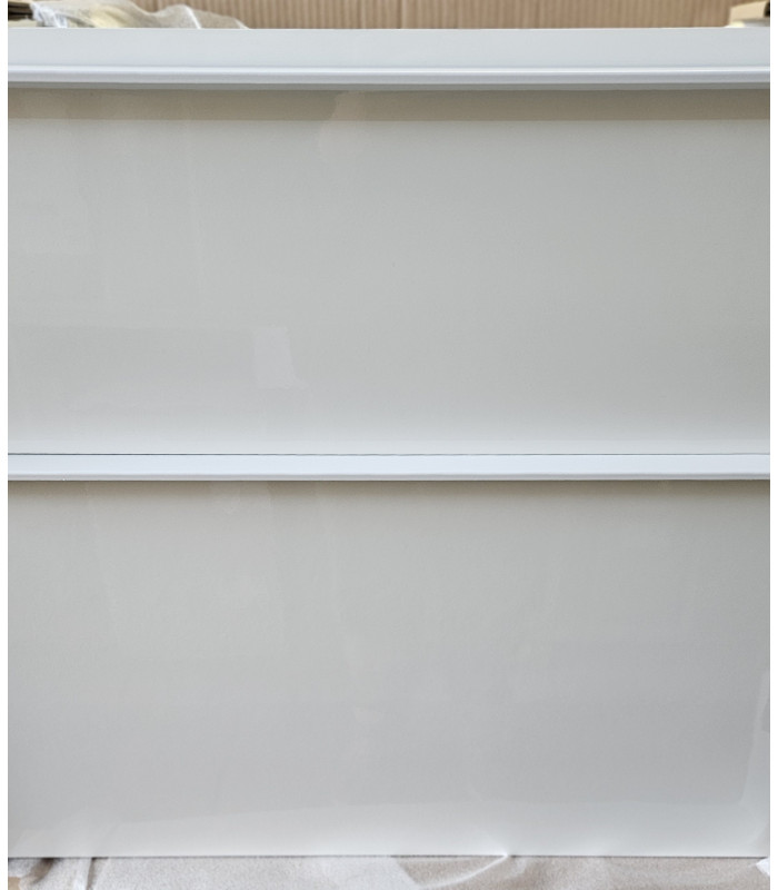 POZOR dvě drobné vady, první je na spodním madle v levé polovině je 1mm kaz madla, druhá vada je úplně dole na skříňce na spodní hraně dolního šuplíku v pravé polovině 1 mm kaz barvy. Tento druhý kaz půjde dobře zakrýt ,,kapkou" bílého laku. Vše nafocené ve fotogalerii.