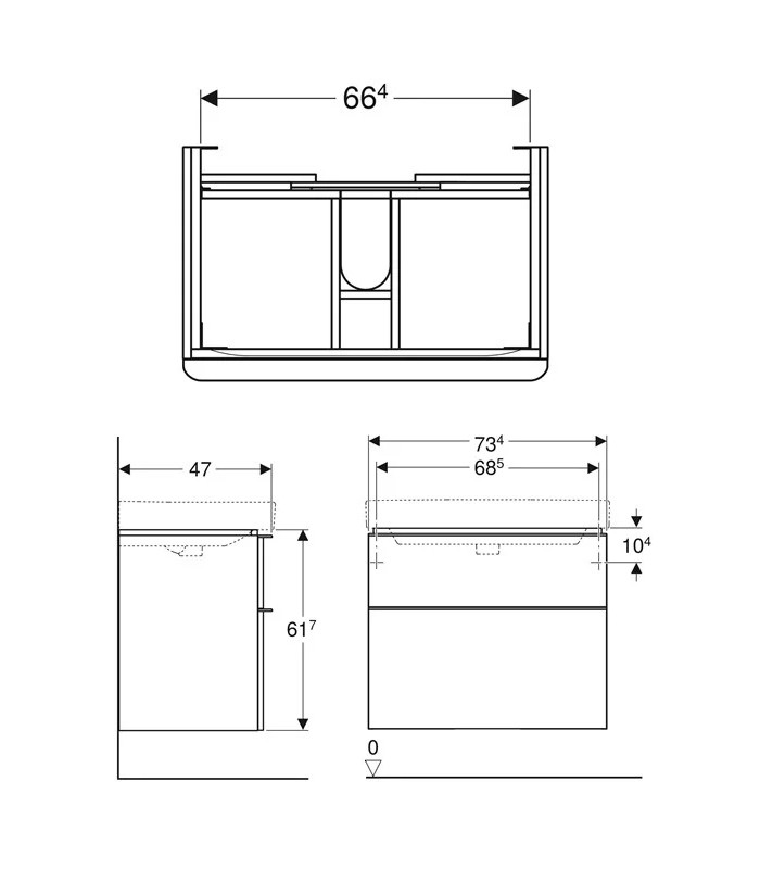 Koupelnová skříň Geberit 500.353.00.1 Smyle Square, rozměr 73,4 x 61,7 cm. Barva bílá lesklá, 2 šuplíky, k zavěšení.