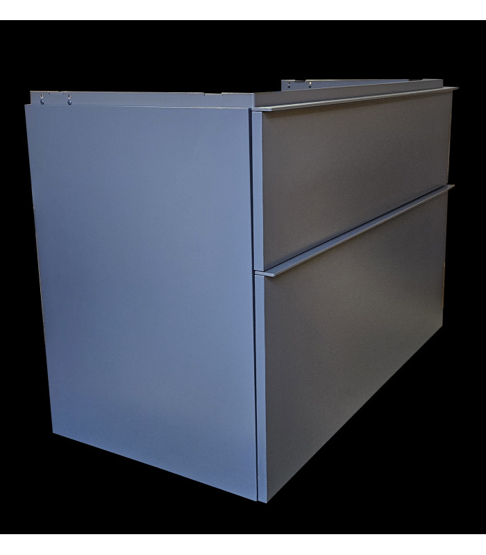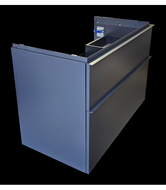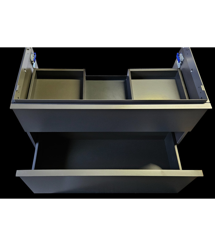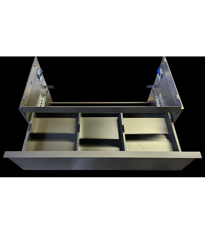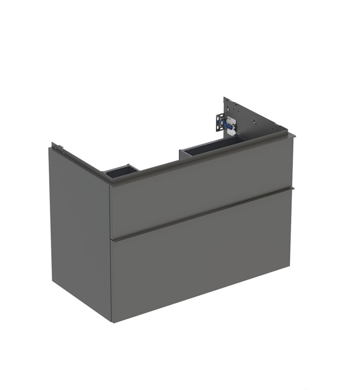 Geberit iCon 502.305.JK.1, závěsná koupelnová skříňka, barvy lávová (šedá) matná, úchytky v lávově matné (prášková barva) via detail ve fotogalerii, rozměry šířka 88,8 x výška 61,5 x hloubka 47,6 cm. Dva šuplíky, s tichým dojezdem, bez výřezu pro odpad. Pro prostorově úsporný sifon. Maximální nosnost šuplíku 30kg. Vrchní ozdobnou kovovou lištu lze namontovat buď skoro celou skrytou, nebo tak jak je nafoceno ve fotogalerii, rozdíl je poté v tom, že v prvním případě po nasazení umyvadla bude lišta skryta, kdežto v druhé poloze bude mezi skříňkou a umyvadlem pohledově vidět. Do této lišty lze z boku dokoupit od Geberitu držák na ručníky, jenž se instaluje do připravených otvorů. Celková hmotnost 33,22 kg. Včetně montážní sady pro zavěšení.