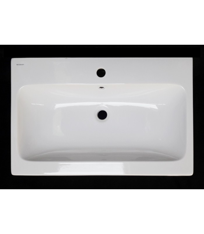 Geberit iCon 124075000 umyvadlo, rozměry šířka 75 cm x hloubka 48,5 cm, váha 21,7 kg, s otvorem pro baterii, s přepadem. Kombinovatelné se spodními skříňkami Geberit/Keramag č. 840275-840277, 841275-841277, 840375-840377, 841375-841377,