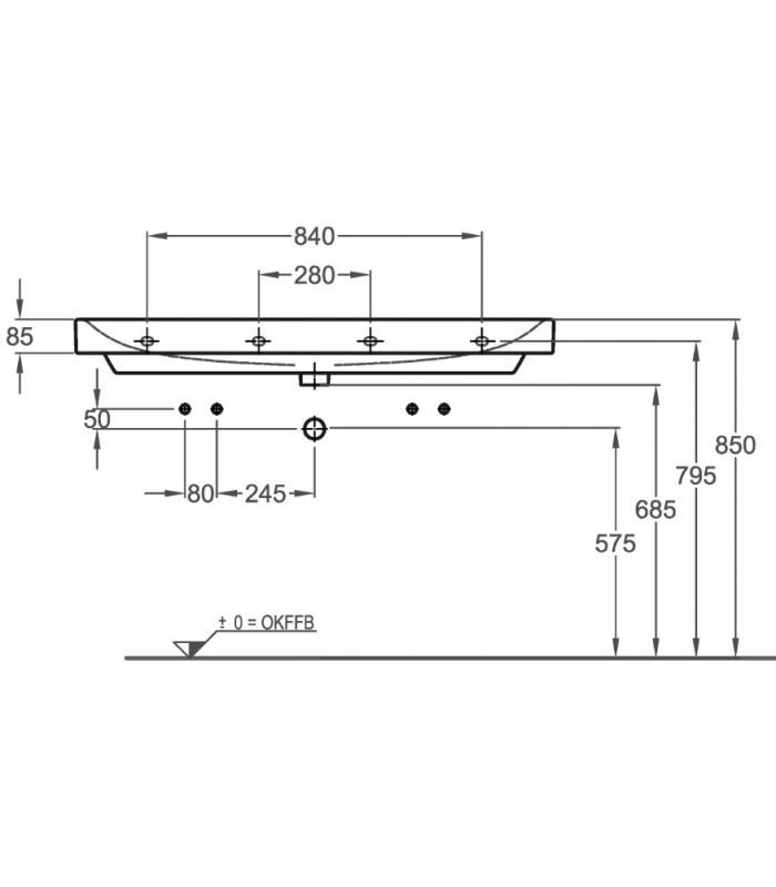 Diana M100, dvojumyvadlo na dvě baterie s jedním odpadem a přepadem, rozměr 120 x 48 cm.