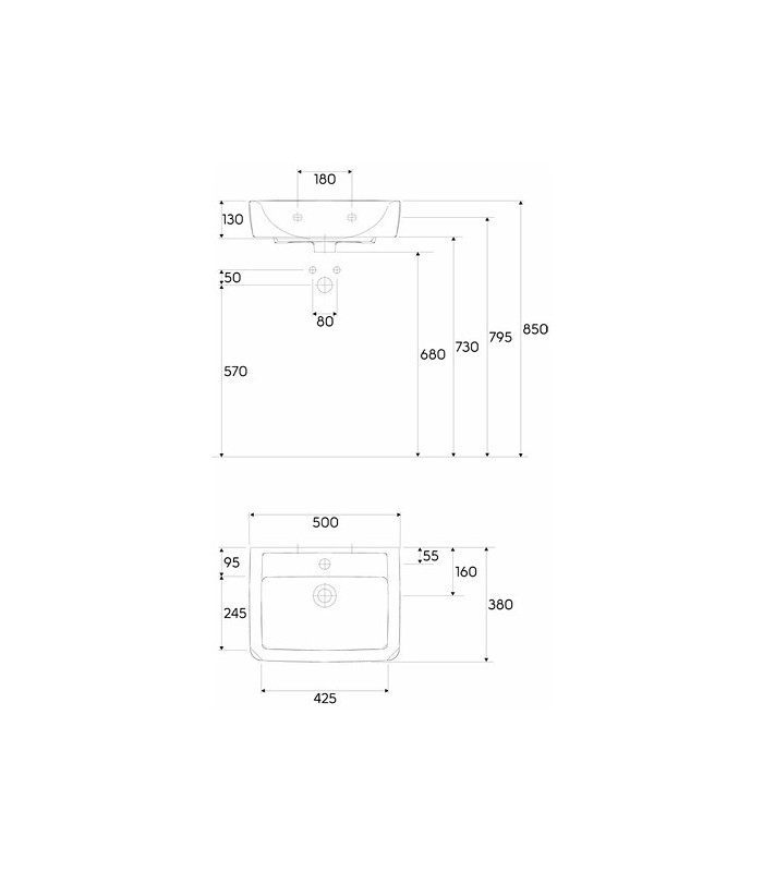 Geberit Renova Plan 501.628.00.1, s otvorem pro baterii, s přepadem, k zavěšení. Rozměr šířka 50 x výška 17 x hloubka 38 cm. Kombinovatelné se spodní skříňkou Geberit/Keramag č. 869050-869053, 879350-879354, nebo modely Geberit č.: 501.903.01.1, 501.903.JK.1, 501.903.00.1, nebo 501.903.JR.1.