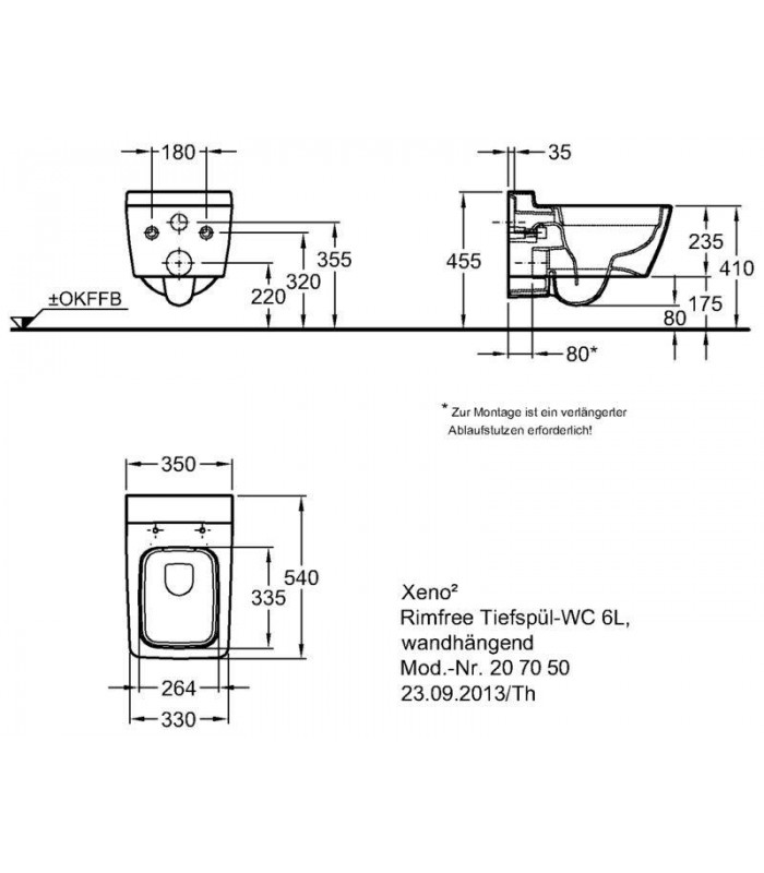 Keramag WC Xeno2 Rimfree 207050000, závěsné, šrouby jsou součástí balení. Doporučená prodloužená odpadní roura.