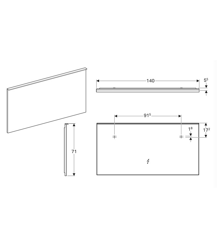 Zrcadlo Geberit Xeno2 model 500.203.00.1, rozměry šířka 140 x výška 71 x hloubka 5,5 cm, váha 17,516 kg. Přívod proudu zezadu 230 V, ~50 Hz 60 Hz. Světlo na zrcadle 4200K, přímé osvětlení 3759 lm, nepřímé osvětlení 2660 lm, LED 12 V DC, IP 44. Vypínač přímo na zrcadle - senzor. Celkem jsou na spodní straně 4 senzory: vypínač horního světla, ztlumení a zvýšení horního osvětlení a vypínač led osvětlení co je kolem dokola celého zrcadla. Topné spirály proti zamlžování viz foto zezadu se automaticky spustí při zapnutí osvětlení. Zároveň lze mít vypínač externí na zdi, není ale podmínkou. Pozor při montáži, kvůli citlivosti senzoru nesmí být 15 cm pod zrcadlem žádné předměty.