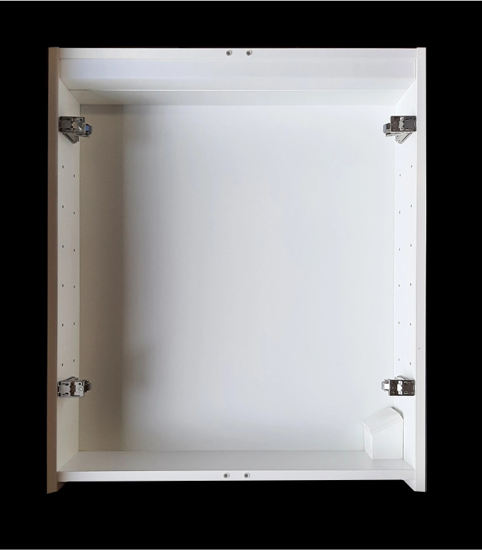 Uvnitř 1x zásuvka. Na spodním okraji obou dvířek je lišta z mléčného skla, aby nebylo vidět ohmatání. 2 nastavitelné skleněné poličky. Možné doplňky: magnetický držák č. 510010, nebo zvětšovací sklo č. 510100.